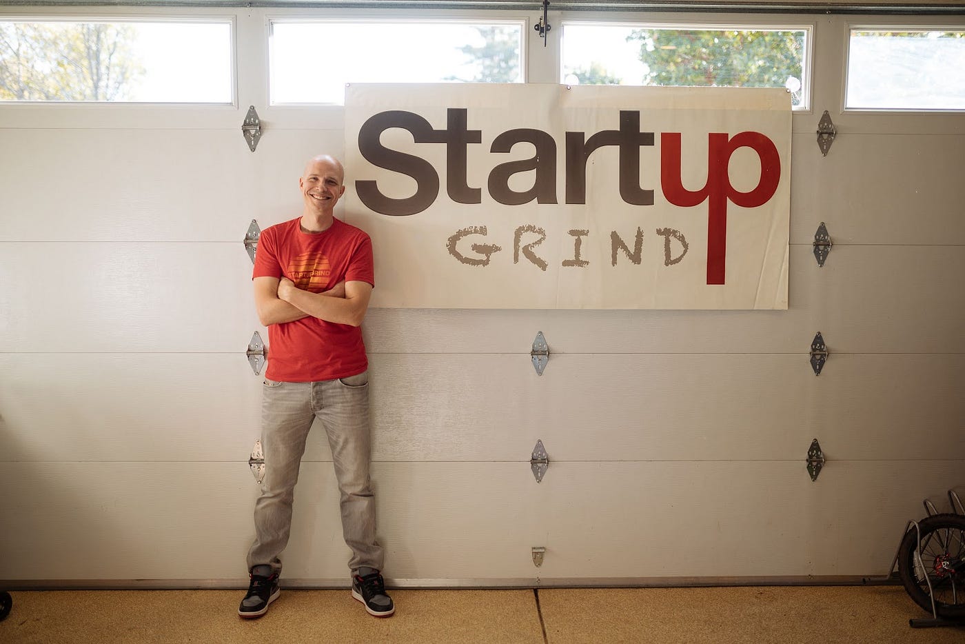 This week, I pulled out and hung the original Startup Grind banner on the garage door where it’s always belonged. I printed it in a panic before one big event, and we used it for years after that.